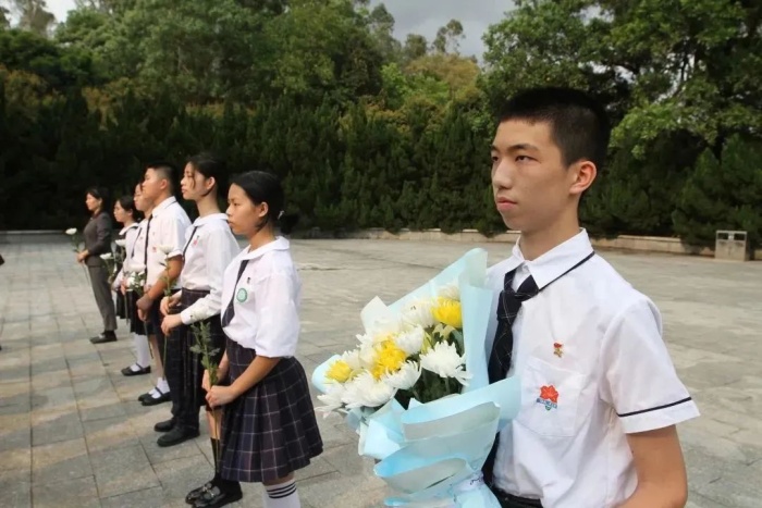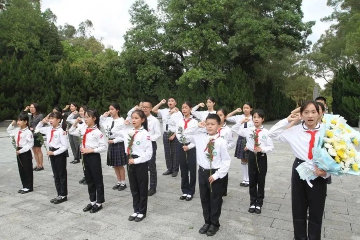 翠柏青松伴英烈,清明祭掃寄哀思。在清明節(jié)來臨之際,中山市大信學(xué)校開展“緬懷革命先烈 樹立紅色理想”清明祭英烈活動(dòng),引導(dǎo)學(xué)生緬懷先輩,銘刻歷史,學(xué)會(huì)感恩,繼承先烈遺志,珍惜幸福生活,把個(gè)人理想追求融入實(shí)現(xiàn)中國(guó)夢(mèng)的共同奮斗之中。大信學(xué)校黨員代表、團(tuán)員代表、少先隊(duì)員代表參加此次活動(dòng)。