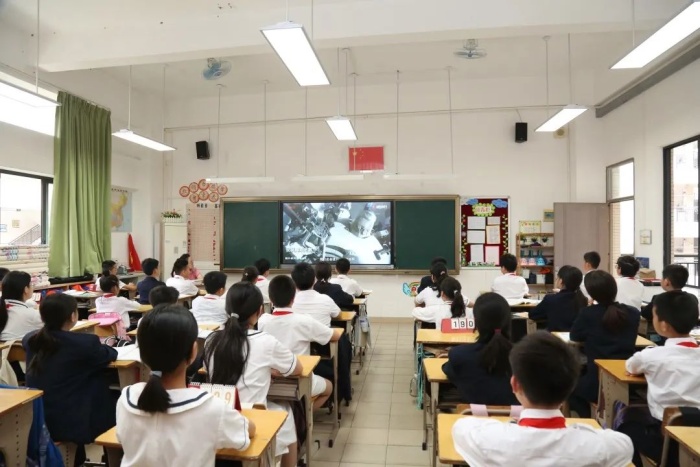 全體師生觀看生動易懂的科普視頻,讓同學們了解當今世界最前沿科技,極大地激發(fā)了學生對科技創(chuàng)新的興趣。