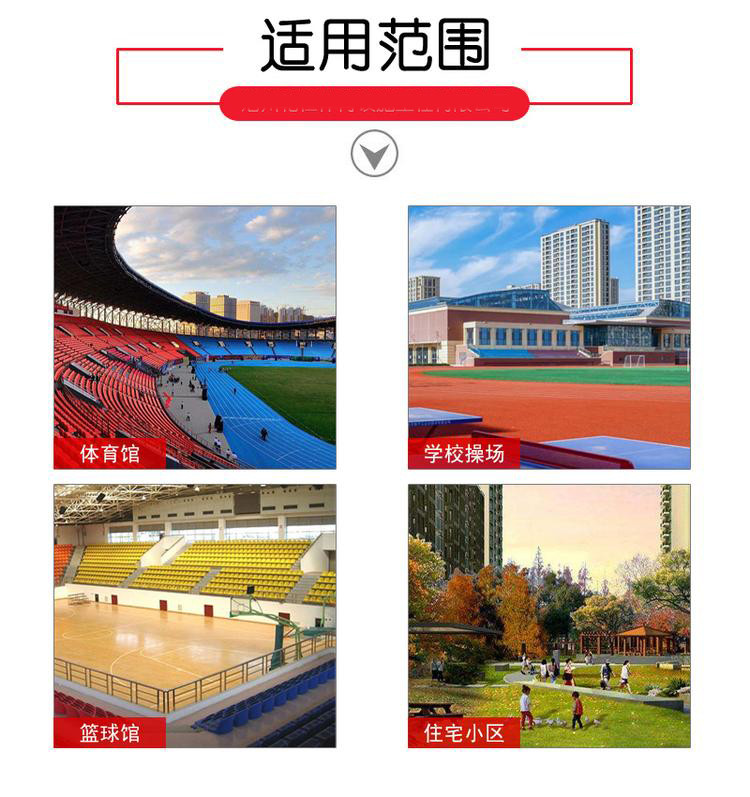 一般來講,通常說的跑道是指各級各類學(xué)校及專@業(yè)體育場內(nèi)的田徑場跑道,有標(biāo)準(zhǔn)跑道和非標(biāo)準(zhǔn)之分,標(biāo)準(zhǔn)跑道是指周長為400米,半徑為36.5米(另外還有36米和37.⑧⑨8米兩種),非標(biāo)準(zhǔn)跑道是指根據(jù)cāo場用地面積形狀和大小,適當(dāng)?shù)卣{(diào)整cāo場的半徑和周長,常見的有周長為200米、300米等。??而塑膠跑道根據(jù)其施工的結(jié)構(gòu)、用料可分為:預(yù)制型橡膠卷材跑道混合型塑膠跑道復(fù)合型塑膠跑道透氣型塑膠跑道EPDM塑膠跑道預(yù)制型橡膠卷材跑道和混合型塑膠跑道因其無可比擬的性能是專@業(yè)的田徑運(yùn)@動場的常用類型,但其價@格高;復(fù)合型塑膠跑道性能介于混合型與透氣型之間,價@格要略低于混合型。?