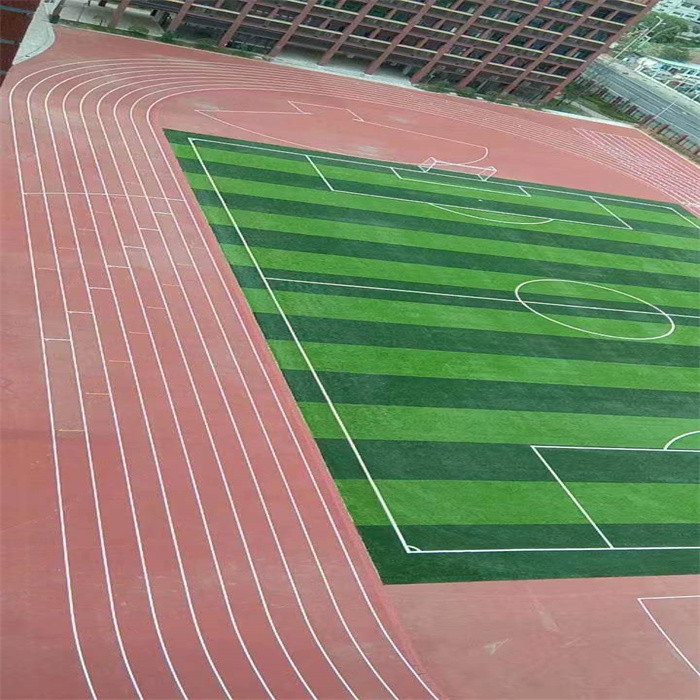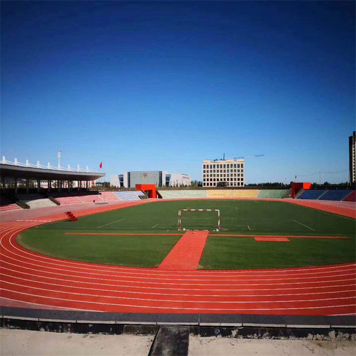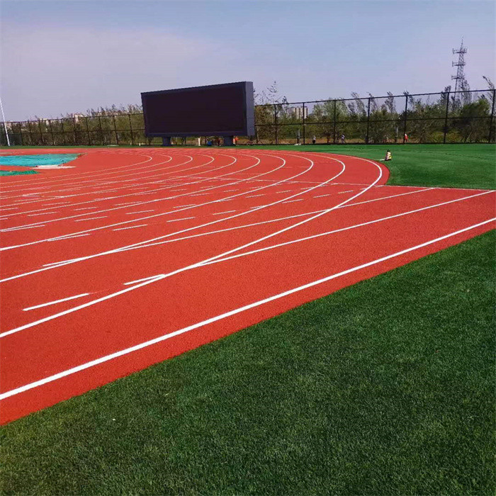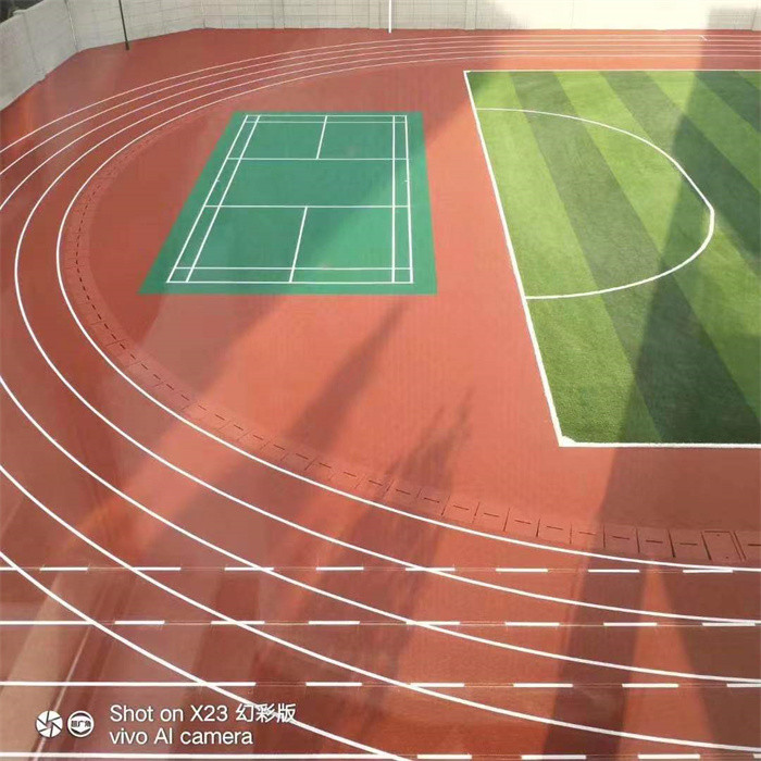 混合型塑膠跑道是由雙組分聚氨酯膠與黑色橡膠顆粒兩種的塑膠底層組成一種新型高分子合成材料,現已被認為是目前體育運動場地使用材料,它具有強度高、彈性好、吸震性能好、耐磨、耐氣候老懷、防滑、平整和色彩美觀的特點。同時場地易于清潔和維修管理,不受氣候條件的影響。美觀、鮮艷、平坦,使運動員具有舒適感,振奮精神,提高水平。