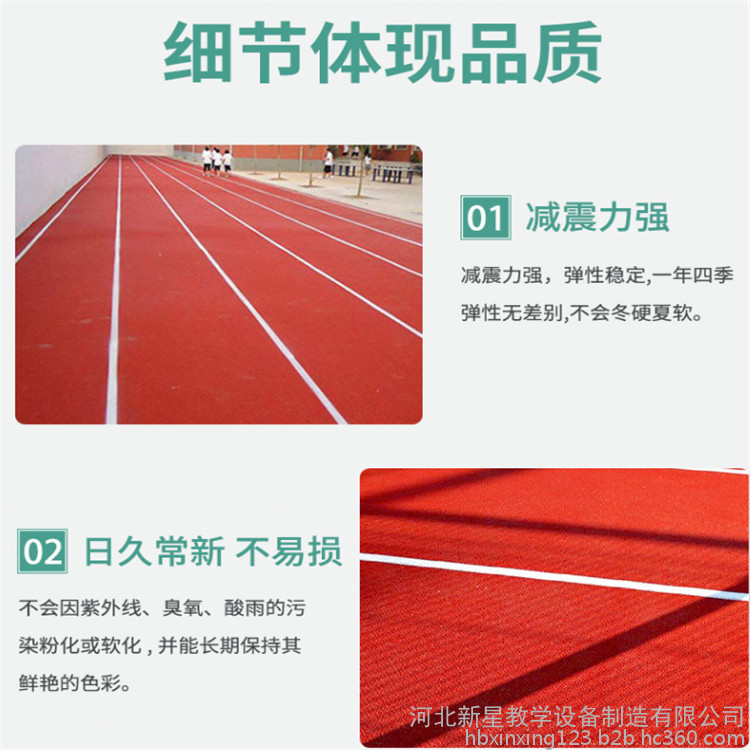 塑膠跑道的主要成分是丙烯酸和高質(zhì)量樹脂,其材料類似于盛放食品的方便袋,符合環(huán)保型面層材料要求。塑膠跑道的原材料對環(huán)境、人體無毒無害。且具有防紫外光、防磨損、防爆裂、抗老化、壽命長、容易保養(yǎng)、維修費用低等特點。