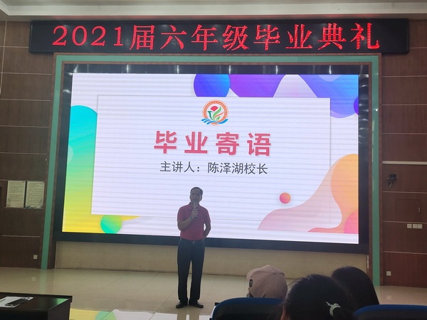 典禮上,六年級優(yōu)秀學(xué)生吳志鵬的媽媽發(fā)言,吐露了家長們的心聲:感謝學(xué)校為孩子們搭建追求夢想的平臺;感恩老師的無私奉獻(xiàn);希望孩子們銘記師恩,不負(fù)母校的培育,不負(fù)老師的期待,不負(fù)父母的重托,努力進(jìn)取,創(chuàng)造美好未來!