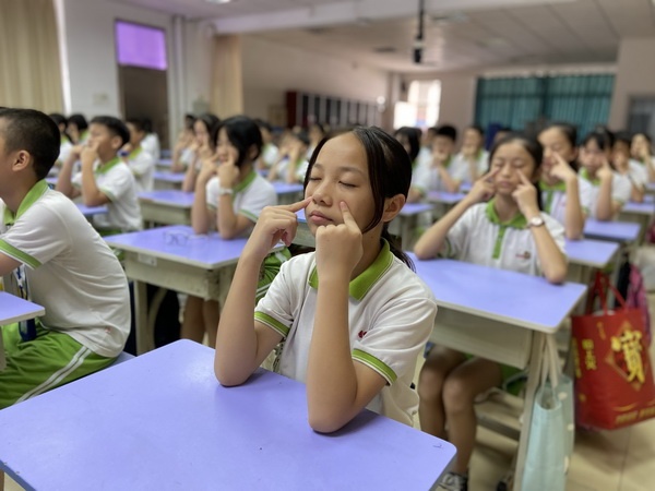 下午四點(diǎn)整,隨著悠揚(yáng)的眼保健操音樂響起,比賽開始了。按四白穴、擠按睛明穴……同學(xué)們認(rèn)真投入,一邊聽著音樂,一邊認(rèn)真地按節(jié)奏揉捏穴位,評(píng)委組的老師則按照比賽要求深入到每個(gè)班級(jí),通過對(duì)學(xué)生精神面貌、準(zhǔn)備姿勢(shì)、穴位、動(dòng)作、節(jié)奏等方面進(jìn)行量化評(píng)比打分。