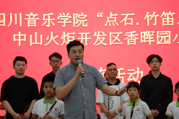 接著,沈團(tuán)長發(fā)表講話。他高度贊揚(yáng)了此次竹笛表演的效果,充分肯定了香小竹笛特色教育開展得有聲有色,并對孩子們學(xué)習(xí)竹笛提出了建議。他指出,竹笛的學(xué)習(xí)不是一蹴而就的,貴在堅(jiān)持,只有不斷的刻苦訓(xùn)練,通過長時間的積累,才能有所進(jìn)步,有所突破。他勉勵孩子們把握優(yōu)異的學(xué)習(xí)環(huán)境和學(xué)習(xí)機(jī)會,好好學(xué)習(xí),爭當(dāng)竹笛藝術(shù)的傳承者、傳統(tǒng)文化的弘揚(yáng)者。在之后的交流環(huán)節(jié)中,現(xiàn)場學(xué)生積極舉手,就竹笛學(xué)習(xí)過程中遇到的困惑向樂團(tuán)的老師們請教,老師們細(xì)心指導(dǎo),耐心示范,一一解惑。