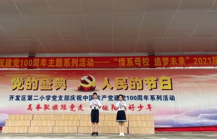 開(kāi)發(fā)區(qū)第二小學(xué)2021屆學(xué)生畢業(yè)典禮在學(xué)校各部門(mén)通力協(xié)作下圓滿(mǎn)落下帷幕,畢業(yè)生們和老師們用最深情的方式向祖國(guó)百年華誕獻(xiàn)禮。衷心祝愿開(kāi)發(fā)區(qū)第二小學(xué)2021屆莘莘學(xué)子樹(shù)立遠(yuǎn)大志向,奮發(fā)圖強(qiáng),勇?lián)鐣?huì)責(zé)任,走好人生路!