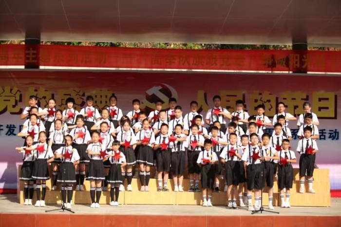 操場上空回蕩著歲月的記憶:《沒有共產(chǎn)黨就沒有新中國》《紅星歌》《中國少年先鋒隊隊歌》……優(yōu)美激昂的旋律,給人以振奮,給人以力量,引領(lǐng)著我們闊步向前。