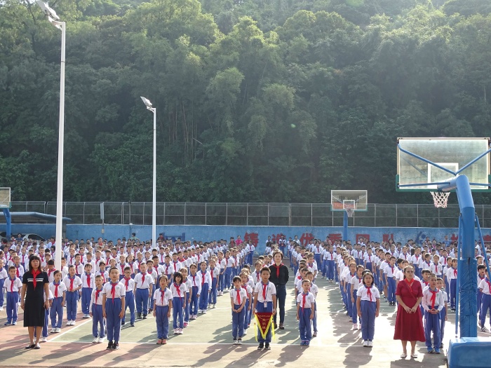 活動正式開始前,在副大隊長黃心妍同學(xué)的指揮下,全體少先隊員以飽滿的激情合唱《中國少年先鋒隊隊歌》。
