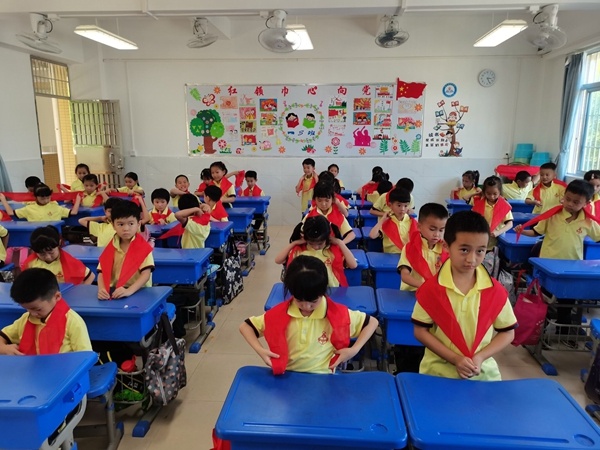為了進(jìn)一步培養(yǎng)學(xué)生熱愛黨、熱愛祖國、熱愛人民的高尚品質(zhì),激勵(lì)他們爭當(dāng)新時(shí)代好隊(duì)員,2021年5月18日下午,在迎來中國共產(chǎn)黨建黨100周年之際,火炬開發(fā)區(qū)第三小學(xué)大隊(duì)部利用少先隊(duì)活動課,由大隊(duì)委員為一年級的同學(xué)開啟了生動而嚴(yán)肅的教育活動,孩子們備受鼓舞愛國愛黨之情更加飽滿,對加入中國少年先鋒隊(duì)充滿期待!