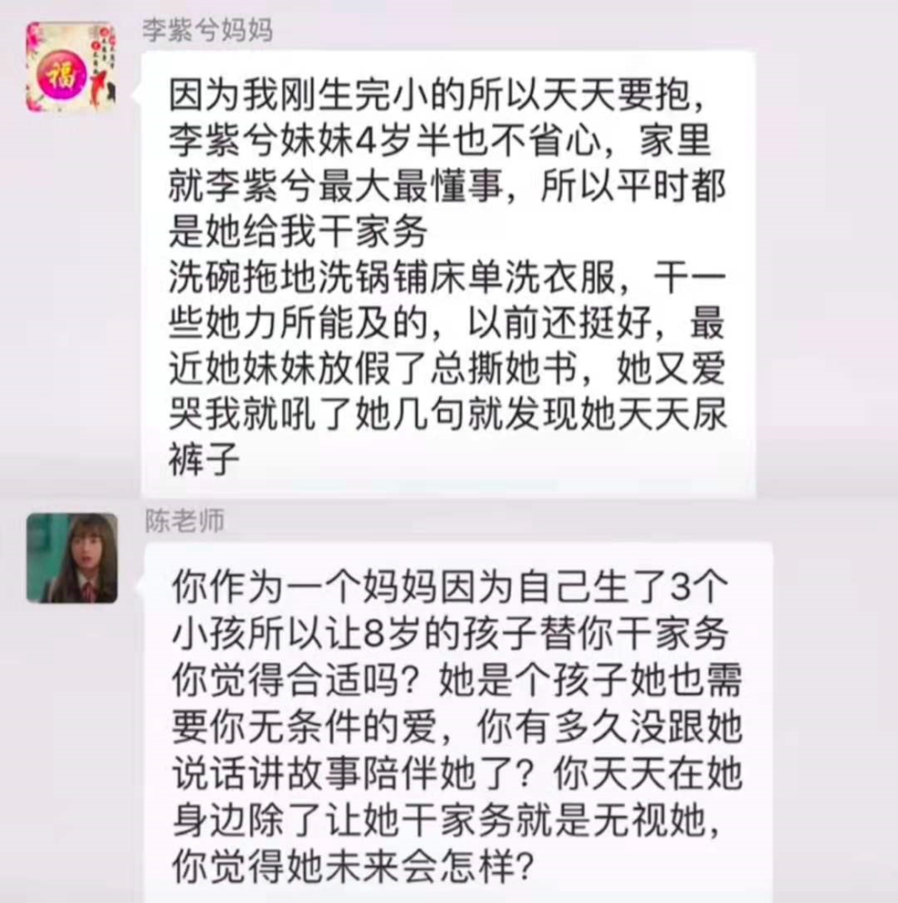 很快,事實的真相出來了,這位學(xué)生明明才8歲,但是還要在家里做家務(wù),家長還縱容默許其他孩子欺負這個學(xué)生,所以學(xué)生才會用這種方式引起家長注意,這個學(xué)生又有什么錯呢?不過又有其他家長出來攪局了。