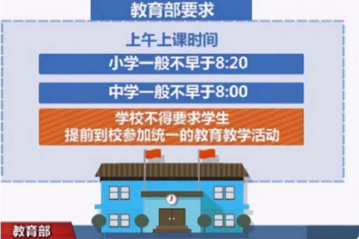 針對中小學(xué)生睡眠不足的問題,教育部發(fā)布了暖心通知,對中小學(xué)生早上到校的時間有所調(diào)整,小學(xué)上課時間不可以早于8點(diǎn)20,中學(xué)上課時間不可以早于8點(diǎn)。