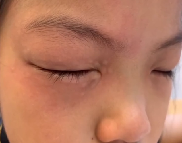 一位浙江的網(wǎng)友在網(wǎng)上曬出了一段9歲小學(xué)生做數(shù)學(xué)題的視頻,視頻中我們看到,這位小學(xué)生正在不斷地揉眼睛,仔細(xì)一看發(fā)現(xiàn)她眼睛四周出現(xiàn)了過敏情況:長了很多小疙瘩。