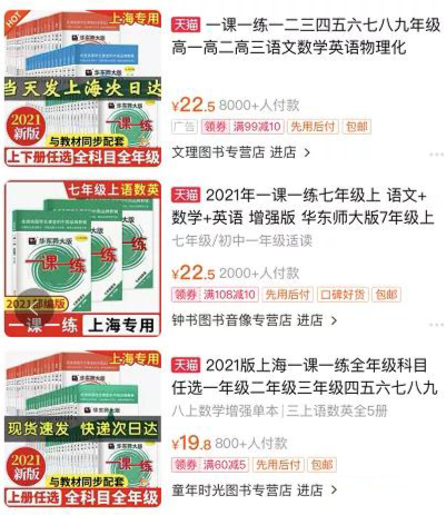 諸如《舉一反三》《一課一練》等知名教輔資料仍然在售,可能整治的重點目標應(yīng)該是針對那些義務(wù)教育階段及學(xué)齡前違規(guī)校外培訓(xùn)課程和違規(guī)電子教材等。(以后還能不能銷售,未知)