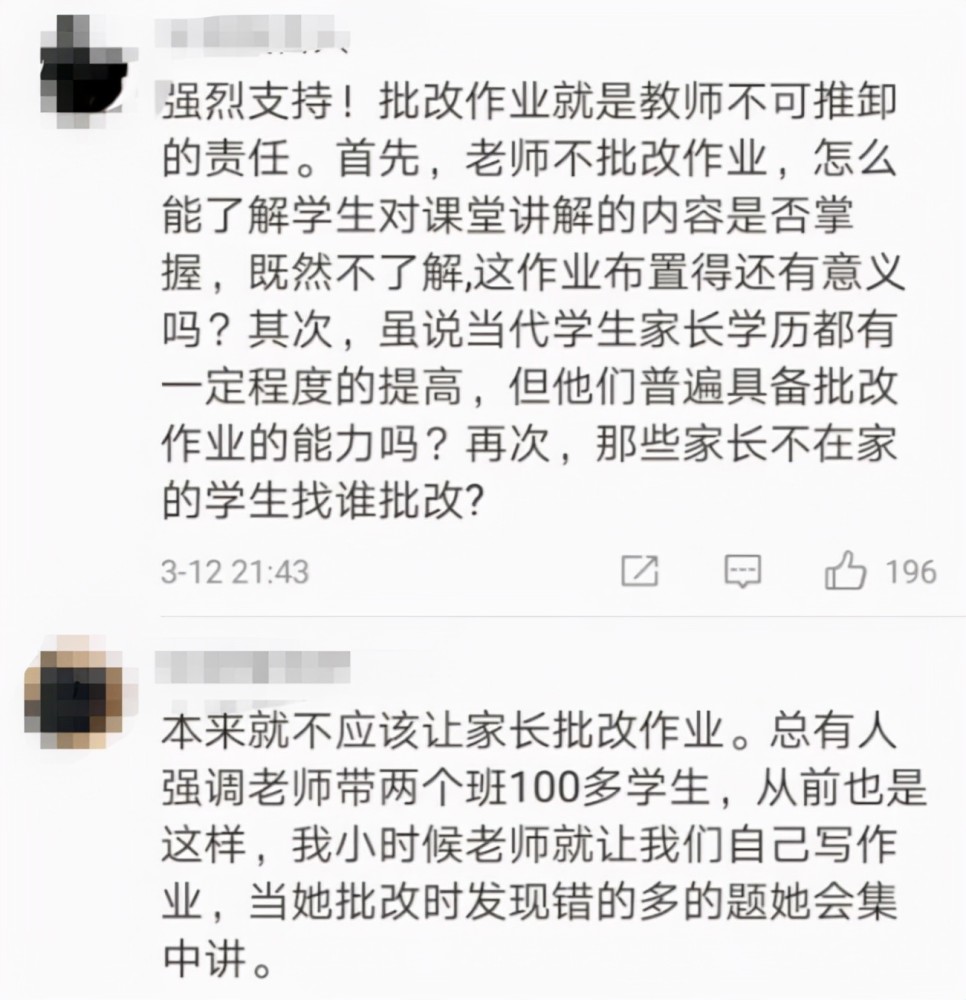 簡而言之,家長認為批改作業(yè)是老師的義務(wù),但老師覺得自己時間不夠精力有限,雙方各執(zhí)一詞爭執(zhí)不下。