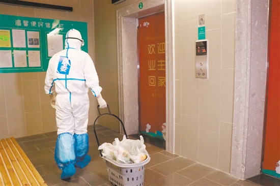 △網格員送生活物資上門。