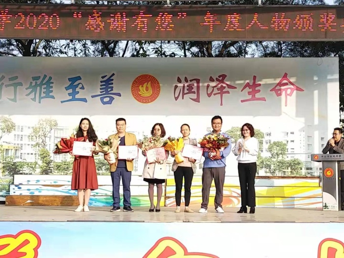 當莊嚴的國歌響起,開學典禮正式開始。首先舉行的是“東鳳中學2020‘感謝有你’年度人物頒獎”,經(jīng)過學校各部門的推薦、學校行政會議的反復評選,最終評選出9個2020“感謝有你”年度人物。他們有的兢兢業(yè)業(yè)、默默耕耘;有的堅守基層,抗擊疫情,守護平安校園;有的舍小家,顧全局,一片赤誠為教育······他們以身作則,用行動詮釋“善雅”理念,證明平凡中也有偉大。