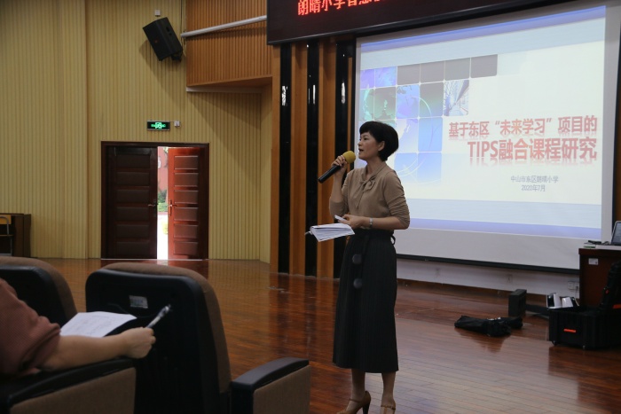 會議梳理了朗晴小學(xué)“基于東區(qū)‘未來學(xué)習(xí)’項目的TIPS融合課程研究”獲中山市教育技術(shù)中心立項的緣由歷程,再次重述“TIPS”內(nèi)涵,即技術(shù)支持的學(xué)習(xí)(Techology &Media),跨學(xué)科的融合課程(Integrated curriculum),基于項目的學(xué)習(xí)(Project Based learning),培養(yǎng)合作的社會技能(Social skills)。就項目開展過程中的困惑與中山市教育技術(shù)中心的反饋意見進行了梳理。在此基礎(chǔ)上,陳麗媛主任闡述了項目的后期建設(shè)與規(guī)劃要求,明確指出應(yīng)以完善和構(gòu)建智慧教學(xué)環(huán)境,實踐與實施智慧教學(xué)模式,開發(fā)、應(yīng)用與共享數(shù)學(xué)資源為研究目標(biāo),各學(xué)科組長應(yīng)成為中堅力量,更新教學(xué)理念,帶領(lǐng)學(xué)科組教師在實踐中探索創(chuàng)新,順利完成融合課程實踐課指標(biāo),積累經(jīng)驗與智慧,最終助力學(xué)校轉(zhuǎn)變?yōu)閷嵤?shù)字化常態(tài)教學(xué)的新型智慧學(xué)校。