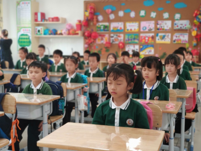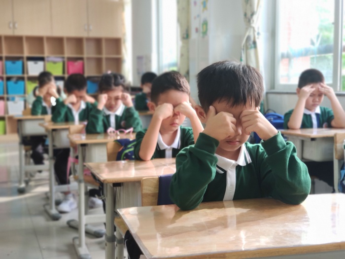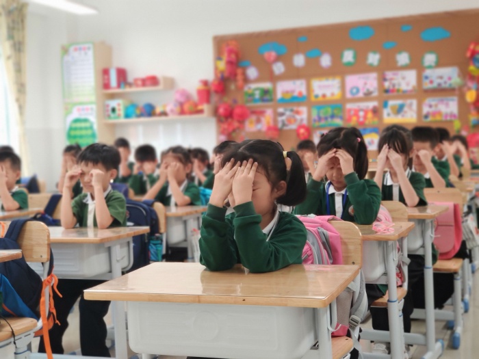 10月15日、16日比賽過程中,學(xué)生精神抖擻,端坐整齊,隨著悠揚(yáng)的音樂響起,認(rèn)真而有節(jié)奏地按揉穴位,動(dòng)作規(guī)范,態(tài)度認(rèn)真,享受著做眼保健操帶來的放松和愉悅。張鵬副校長(zhǎng)帶領(lǐng)評(píng)委們從各班的精神面貌、個(gè)人衛(wèi)生、動(dòng)作要領(lǐng)等方面進(jìn)行評(píng)比反饋。