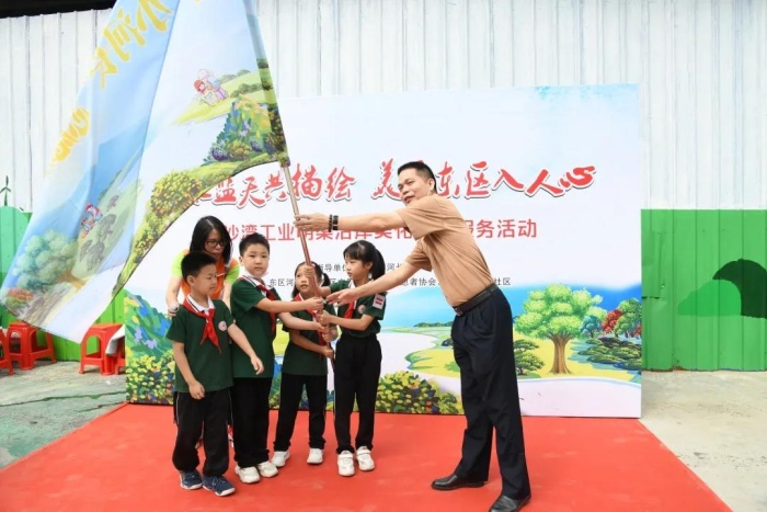 10月17日上午,東區(qū)水云軒小學(xué)二(8)中隊(duì)20組親子家庭參加由東區(qū)河長辦主辦,東區(qū)文明辦、東區(qū)志愿者協(xié)會(huì)、齊富灣社區(qū)共同協(xié)辦的 “碧水藍(lán)天共描繪,美麗東區(qū)入人心”沿岸美化志愿服務(wù)活動(dòng)?;顒?dòng)在白沙灣工業(yè)明渠沿岸開展。活動(dòng)開始,由中山市東區(qū)黨工委副書記黃沛華為本次活動(dòng)致辭,中山市河長辦四級(jí)調(diào)研員張志明向?qū)W生代表授旗,并共同簽下“愛河護(hù)河,我們齊行動(dòng)”東區(qū)水環(huán)境保護(hù)倡議書。此次活動(dòng)共分為兩大部分,第一部分是用手描繪心中美景,軒小志愿者們一起揮起手中的畫筆,共同描繪美麗東區(qū),裝點(diǎn)河渠兩岸;第二部分是認(rèn)真學(xué)習(xí)護(hù)河知識(shí)和巡河。社區(qū)級(jí)河長、齊富灣社區(qū)黨委書記唐宇麟分別就河涌環(huán)境治理知識(shí)以及巡河時(shí)的安全問題給孩子們進(jìn)行講解。講解結(jié)束后,在社區(qū)級(jí)河長的帶領(lǐng)下,小河長們?cè)诎咨碁彻I(yè)明渠沿岸開始了第一次的巡河活動(dòng),并就岸邊的垃圾進(jìn)行回收以及分類,讓隊(duì)員們不只是停留在學(xué)習(xí)環(huán)保知識(shí)的層面上,而是身體力行地去做好環(huán)保,進(jìn)一步提升自身環(huán)保意識(shí)。
