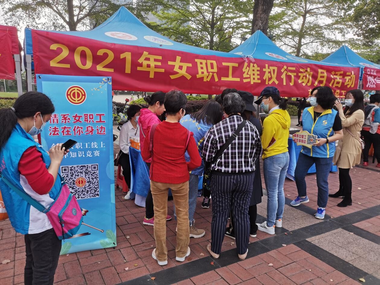 活動(dòng)現(xiàn)場,工會(huì)義工積極引導(dǎo)女職工們掃描二維碼參與“情系女職工法在你身邊”全國職工線上法律知識(shí)競賽活動(dòng),向女職工派發(fā)《廣東省實(shí)施女職工勞動(dòng)保護(hù)特別規(guī)定辦法》、《女職工健康手冊》、《中山市總工會(huì)職工服務(wù)指南》等與女職工息息相關(guān)的工會(huì)法律宣傳資料。還有律師現(xiàn)場接受女職工法律咨詢答疑。本次活動(dòng)共發(fā)放各種宣傳資料500份,宣傳活動(dòng)受到了職工群眾的好評(píng)。