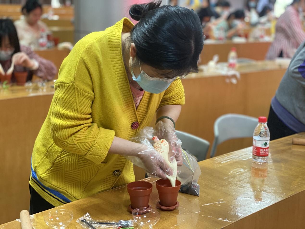 此次活動(dòng)邀請了專業(yè)面點(diǎn)師現(xiàn)場授課,制作內(nèi)容為盆栽蛋糕。活動(dòng)開始后,面點(diǎn)師為大家詳細(xì)講解了配料、制作步驟、制作要領(lǐng)和烘焙有關(guān)知識(shí),并進(jìn)行操作演示,女職工們認(rèn)真觀摩學(xué)習(xí)。