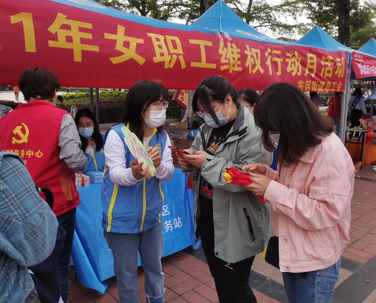 為在廣大女職工中大力弘揚(yáng)法治精神,大力普及法治知識(shí),積極引導(dǎo)廣大女職工自覺守法、遇事找法、解決問題靠法,依法維護(hù)女職工合法權(quán)益。3月14日上午,東區(qū)街道總工會(huì)在紫馬嶺公園門口開展2021年女職工維權(quán)行動(dòng)月宣傳活動(dòng)。
