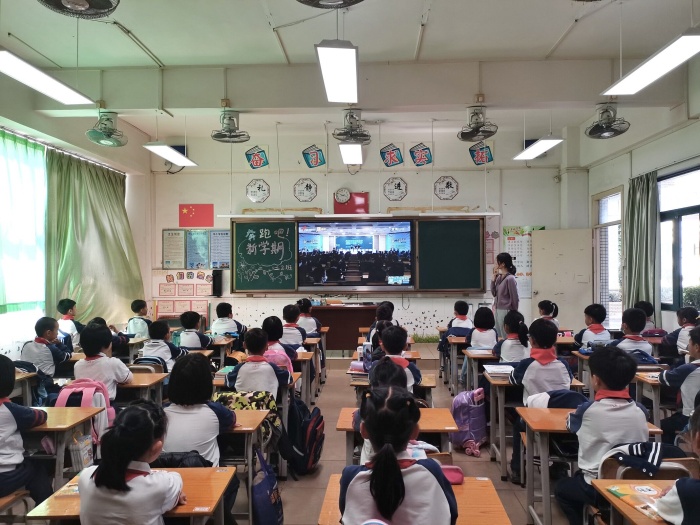 聆聽了梁校長的致辭后,孩子們回到教室,觀看以“健康無憂,快樂成長”為主題的開學(xué)健康安全第一課?!堕_學(xué)健康安全第一課》是廣東省教育廳聯(lián)合省、市相關(guān)部門聯(lián)合給孩子們送上的一份特殊開學(xué)禮物。學(xué)校德育處和少工委根據(jù)上級有關(guān)文件精神和要求,精心組織,大力宣揚。在課堂中,各行各業(yè)的專家和學(xué)者們與大家分享了疫情防控、禁毒知識、近視防控和心理健康等方面的知識。孩子們聆聽了醫(yī)生講述的抗疫故事,并學(xué)會在疫情防控常態(tài)化的情況下如何科學(xué)做好防護;懂得了如何認(rèn)識毒品,并遠(yuǎn)離毒品;學(xué)會了科學(xué)防控近視的好方法;掌握了培養(yǎng)積極的情緒的小妙招;認(rèn)識了防詐騙的一些小技巧,提高了自身防范意識,保護好自己的金融安全。孩子們在班主任的精心組織下,認(rèn)真觀看,積極討論,收獲滿滿!