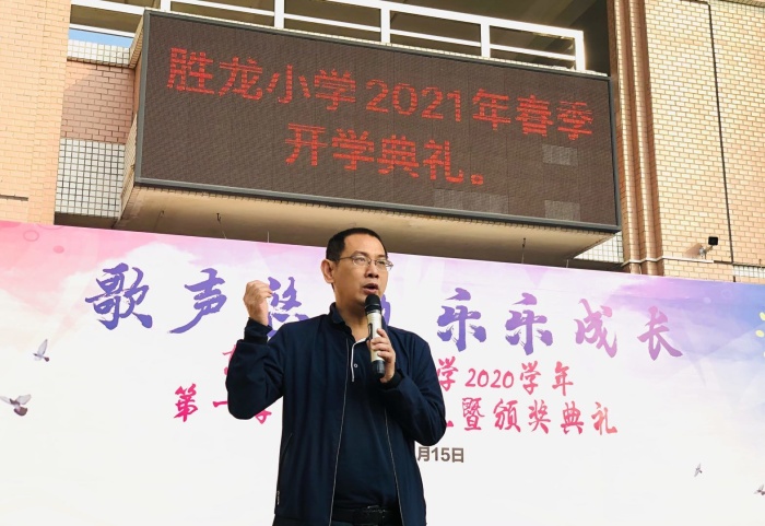 當(dāng)春節(jié)喜慶的氣氛漸漸散去,伴隨著春天腳步到來的,是一個充滿生機的新學(xué)期。2月22日上午,勝龍小學(xué)的全體師生滿懷著新的希望,歡聚在整潔而美麗的校園里,舉行本學(xué)期第一次盛會——開學(xué)典禮。