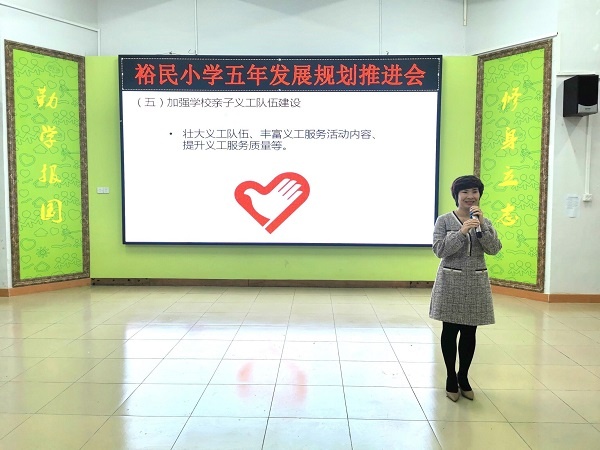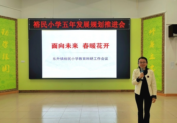 3月10日下午,裕民小學(xué)全體教師集中階梯室召開五年發(fā)展規(guī)劃推進(jìn)會(huì),會(huì)議由溫小玲副校長(zhǎng)主持。
