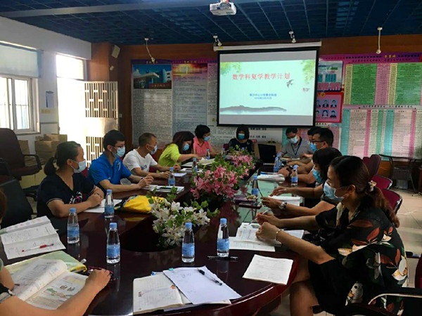 首先,吳文海副校長對這次數(shù)學(xué)科復(fù)學(xué)教學(xué)計(jì)劃研討活動(dòng)進(jìn)行安排,明確活動(dòng)的具體要求。吳文海副校長以自己所教的三(3)班數(shù)學(xué)為例子來介紹復(fù)學(xué)教學(xué)計(jì)劃的制定。他分別從上一學(xué)期學(xué)生成績基本情況分析、線上教育情況的分析、復(fù)學(xué)后提高教學(xué)質(zhì)量的具體措施、復(fù)學(xué)后教學(xué)進(jìn)度安排進(jìn)行詳細(xì)說明。接著,請教育事務(wù)指導(dǎo)中心黃鳳英教研員進(jìn)行指導(dǎo)。她指出復(fù)學(xué)后授課要按質(zhì)按量完成,要真正做到高效課堂。要把每天的教學(xué)內(nèi)容安排出來,以年級為單位嚴(yán)格制定教學(xué)進(jìn)度表,利用測試及時(shí)發(fā)現(xiàn)不足,然后制定補(bǔ)救措施。隨后,數(shù)學(xué)科組分年級進(jìn)行研討,制定復(fù)學(xué)后的教學(xué)計(jì)劃。