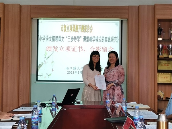 3月16日下午,港口鎮(zhèn)大豐小學市級立項課題《小學語文精讀課文“三步導學”課堂教學模式的實踐研究》正式開題。中山市實驗小學劉利琴副校長,港口鎮(zhèn)教育和體育事務中心、大豐小學責任督學張育文副主任,蘇彩南老師,課題管理人陳艷華老師應邀出席了開題報告會,參加此次報告會的還有大豐小學蘇少麗校長和全體語文老師。