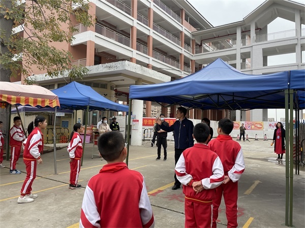 本次演練模擬早上學(xué)生進(jìn)入校園時(shí)的情景,當(dāng)老師在給學(xué)生測(cè)溫時(shí),一名“可疑男子”持兇器從學(xué)校大門進(jìn)入校園,并試圖傷害學(xué)生,危及師生人身安全。值日行政梁耀昌主任看到后迅速組織值日教師疏散周圍學(xué)生,到保安室按下一鍵報(bào)警按鈕,通過(guò)廣播組織師生回到教室、關(guān)好門窗,并用凳子擋門、鎖窗等,提醒師生時(shí)刻保持警惕,做好自我保護(hù)。同時(shí),梁主任第一時(shí)間通知安全組人員及時(shí)趕到現(xiàn)場(chǎng),配合保安人員使用專用防衛(wèi)器械、椅子、木棍等作為防護(hù)和打擊工具,對(duì)歹徒進(jìn)行威懾和制服,以達(dá)到拖延時(shí)間的目的,等待公安人員到來(lái)。部分安全組成員則協(xié)助當(dāng)天值日教師保護(hù)校園外的個(gè)別學(xué)生,確保學(xué)生安全,另一部分安全組成員則在通向校園教學(xué)樓的唯一通道設(shè)置障礙并拿著防護(hù)工具原地守衛(wèi)。整個(gè)過(guò)程井然有序,無(wú)傷情出現(xiàn)。