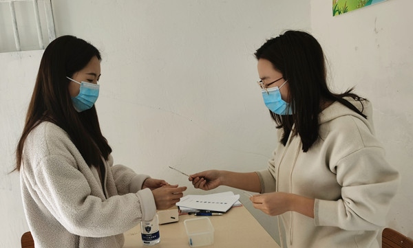 首先,模擬了師生入校的情境。演練中,扮演學(xué)生的教師們戴著口罩,保持間距,依次檢測體溫,有序進(jìn)入校園。當(dāng)現(xiàn)場值日老師發(fā)現(xiàn)有學(xué)生出現(xiàn)異常,立即帶至臨時(shí)觀察區(qū)進(jìn)一步檢測,發(fā)現(xiàn)問題則帶至學(xué)校隔離室進(jìn)行隔離并啟動(dòng)應(yīng)急預(yù)案。接著,模擬了上課期間突發(fā)狀況處理的情境。在上課期間,科任老師發(fā)現(xiàn)有學(xué)生突感不適,及時(shí)對該生測量體溫,發(fā)現(xiàn)異常,馬上將突發(fā)異常的學(xué)生轉(zhuǎn)移至教室門口,囑咐班上其他學(xué)生原地不動(dòng),進(jìn)行自習(xí)。同時(shí),科任老師立即聯(lián)系班主任。班主任到來,帶該生去校醫(yī)室。學(xué)生到達(dá)校醫(yī)室后,校醫(yī)按照疫情防控應(yīng)急程序?qū)W(xué)生進(jìn)行復(fù)查并詢問相關(guān)旅居史、接觸史,該生有接觸中風(fēng)險(xiǎn)地區(qū)人員,立即啟動(dòng)疫情應(yīng)急預(yù)案,按疫情應(yīng)急響應(yīng)處置。