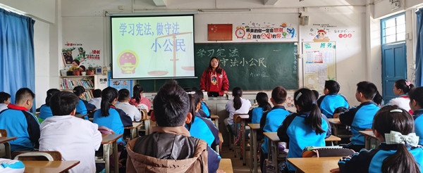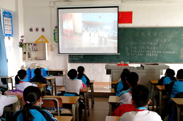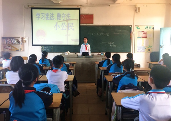 在第七個(gè)國(guó)家憲法日當(dāng)天,全校師生通過(guò)青少年普法網(wǎng),觀看教育部在北京舉辦的“憲法晨讀”活動(dòng),且于9:05-9:15 時(shí)段同步開(kāi)展“憲法晨讀”活動(dòng)。接著,各個(gè)班級(jí)開(kāi)展了“學(xué)憲法,做守法小公民”主題班會(huì)活動(dòng)。課堂上,班主任從身邊的事情說(shuō)起,進(jìn)一步加強(qiáng)學(xué)生的法治意識(shí)。同時(shí),還引導(dǎo)大家反思自身的問(wèn)題,明確養(yǎng)成良好行為習(xí)慣的重要性,做到防患于未然。同學(xué)們則踴躍發(fā)言,把自己學(xué)到的知識(shí)牢牢記在腦里,把憲法和國(guó)家也深深放在心中。班會(huì)結(jié)束后,同學(xué)們紛紛表示:要自覺(jué)遵守法律法規(guī),從小事做起,爭(zhēng)做遵紀(jì)守法的好少年!