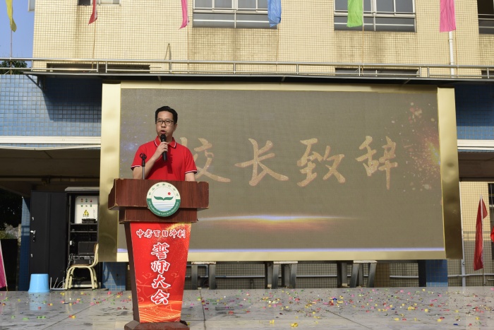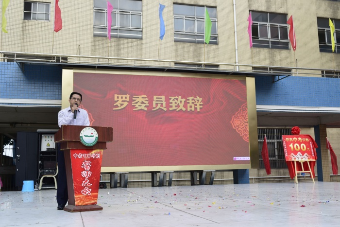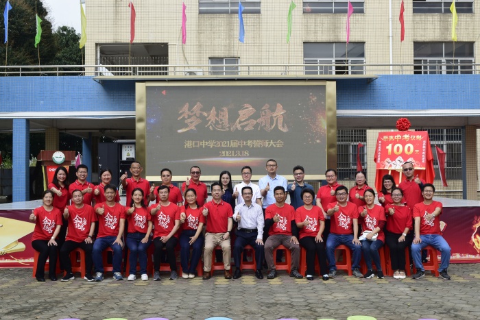 中考,是對(duì)學(xué)識(shí)、體力、心理素質(zhì)的考驗(yàn);是大浪淘沙、優(yōu)勝劣汰的選拔;是更上一層樓,會(huì)當(dāng)凌絕頂?shù)母邏尽=裉?,距離2021年中考僅剩一百天,為了強(qiáng)化學(xué)生們的拼搏意識(shí),激發(fā)學(xué)生們刻苦學(xué)習(xí)的斗志,2021年3月18日,中山市港口中學(xué)隆重舉行中考百日誓師大會(huì)。港口鎮(zhèn)黨委委員羅希京、港口鎮(zhèn)教體文旅局局長(zhǎng)冼偉明、副局長(zhǎng)劉長(zhǎng)路、副局長(zhǎng)吳君嫦、港口鎮(zhèn)教育體育事務(wù)中心主任劉憲軍、副主任張育文以及港口中學(xué)全體行政參加了本次大會(huì)。