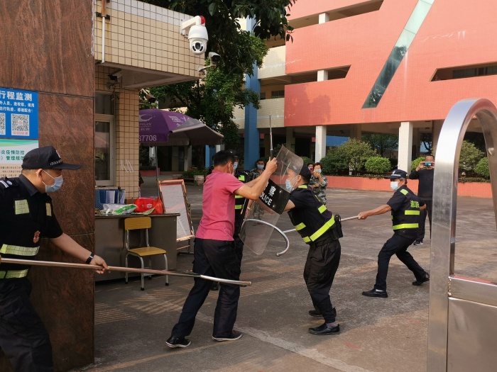 3月16日,為了提升校園安全管理工作水平和安保應急處置能力,確保師生安全。學校組織開展校園安保人員培訓暨安保演練活動,學校副校長張麗君對安保人員提出希望,希望安保人員努力提升業(yè)務能力,工作中做到細心敏銳,處理突發(fā)事件鎮(zhèn)定敢為。此次演練模擬學生放學時段受外來人員暴力襲擊的情境。演練模擬放學時段,陌生男子提出無理要求進入校園,并準備襲擊學生,安保人員立即拿起盾牌鋼叉等進行防護,保護學生并制服暴力分子。同時學校保安進行報警并和校領導匯報,等待下一步處理。演練過程有序規(guī)范,保安臨危不亂,應對得力有效。