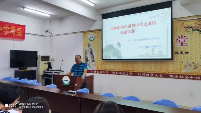 2020年10月28日下午,港口鎮(zhèn)初中語(yǔ)文教師說(shuō)課比賽在港口中學(xué)進(jìn)行,來(lái)自鎮(zhèn)三間初中的9位教師同臺(tái)競(jìng)技,全鎮(zhèn)42位語(yǔ)文老師參加了活動(dòng)。