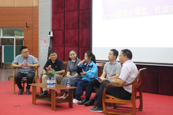 接著,大南中學(xué)德育處副主任周智勇主持了題為《今天,我們要做一名怎樣的思政課教師》的沙龍論壇。第一組嘉賓圍繞思政課承擔(dān)的使命感、課程育人過程中的困惑、如何具體實(shí)施課程育人,達(dá)到立德樹人的目的“論道”。他們指出所有的學(xué)科都擔(dān)負(fù)了育人職責(zé),但是道法學(xué)科是關(guān)鍵,道法課堂是主陣地;思政課教師隊(duì)伍責(zé)任重大,要有信念在心中,幫助學(xué)生扣好“人生的第一??圩印?,樹立文化自信。