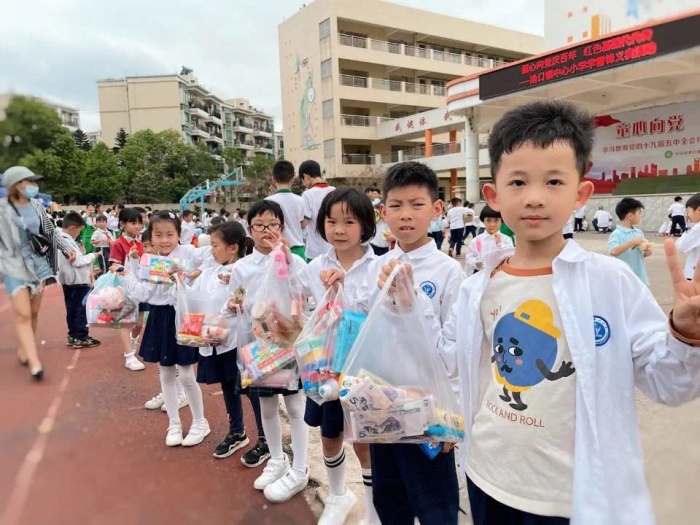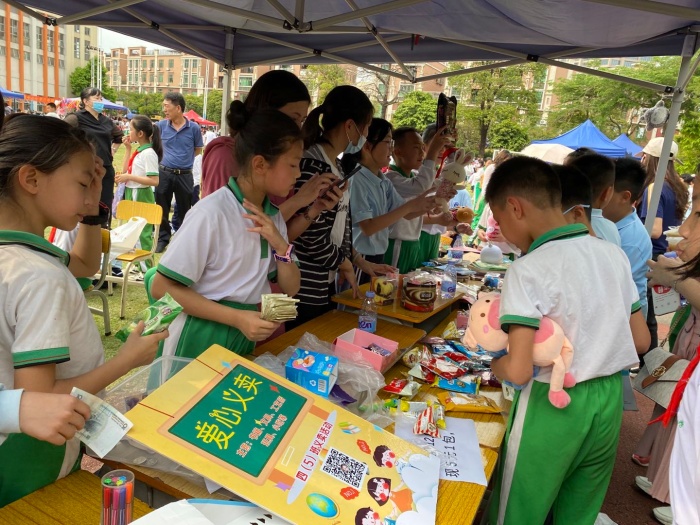 同學(xué)們積極踴躍獻(xiàn)愛(ài)心的同時(shí),也樂(lè)于與朋友們分享自己的“戰(zhàn)利品”。校園的每個(gè)角落都能看到同學(xué)們或在分享自己的美食,或研究討論新買來(lái)的玩具,或交流自己的“戰(zhàn)績(jī)”。