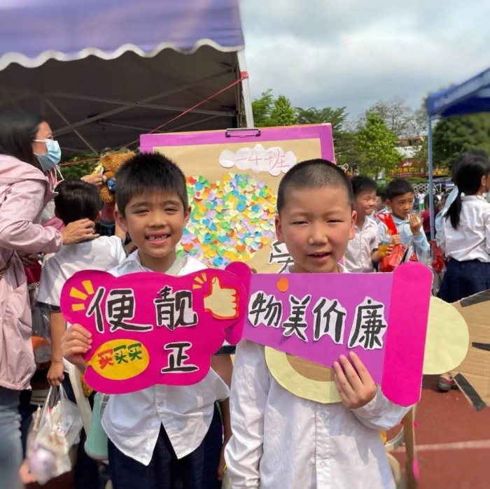 下午14:30,各個(gè)愛(ài)心義賣鋪正式開(kāi)張營(yíng)業(yè)。義賣現(xiàn)場(chǎng)的精彩好貨真是琳瑯滿目,各式物件一應(yīng)俱全,更有深受小吃貨們歡迎的美味佳品。在活動(dòng)現(xiàn)場(chǎng),老師、家長(zhǎng)、同學(xué)們?cè)跀偽磺盁崆榻匈u,“小蜜蜂”、小喇叭、音箱也相繼出現(xiàn)。大家使出各種招數(shù)招攬顧客,買一送一、買就抽獎(jiǎng)、便宜大甩賣等等,各攤位前人頭攢動(dòng)。各愛(ài)心小店的“工作人員”也分工明確,兜售的、收錢的、擺貨的……鏡頭里全是大家熱情的、開(kāi)懷的笑容。