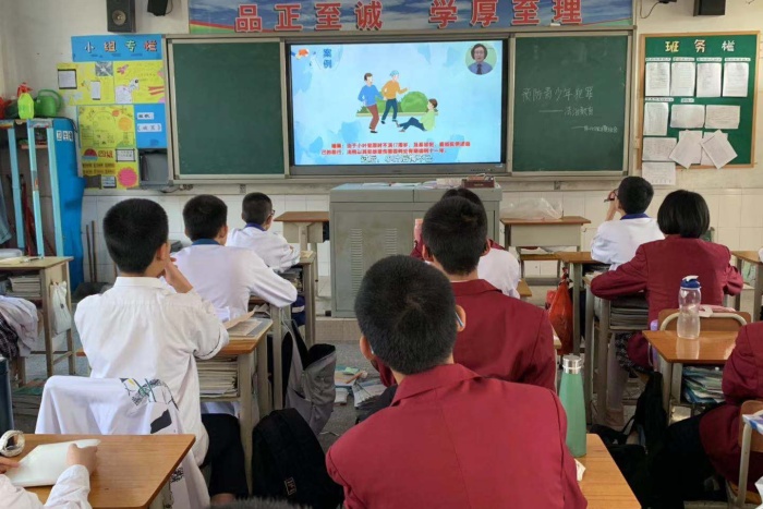 為了使同學(xué)們了解什么是違法行為,以及懂得違法行為的危害性,曹步中學(xué)初二(4)班于2020年12月28日舉行了“預(yù)防犯罪和自我保護”主題班會,初二(4)班全體同學(xué)參加了此次班會。