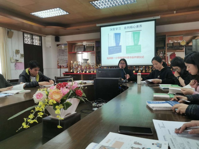 隨后,在科組長的組織下,科組老師進(jìn)行了《深度學(xué)習(xí):向核心素養(yǎng)》一書的讀書分享開讀儀式。在儀式中,程木英老師帶領(lǐng)科組教師開展了讀書的價值探析與心得分享活動?;顒又?,程老師宣講了讀書會的書單,包括學(xué)科教學(xué)指南、理論普及讀本等。程老師強(qiáng)調(diào),要把課程改革作為落實(shí)立德樹人根本任務(wù)的一個重要抓手和突破口,要求學(xué)科教師在深度學(xué)習(xí)教學(xué)改進(jìn)項(xiàng)目研究與實(shí)驗(yàn)成果的階段性總結(jié)時,能通過書籍得到進(jìn)一步深化學(xué)習(xí),提升自身素質(zhì)。