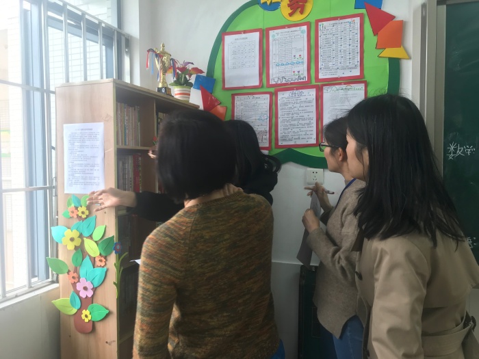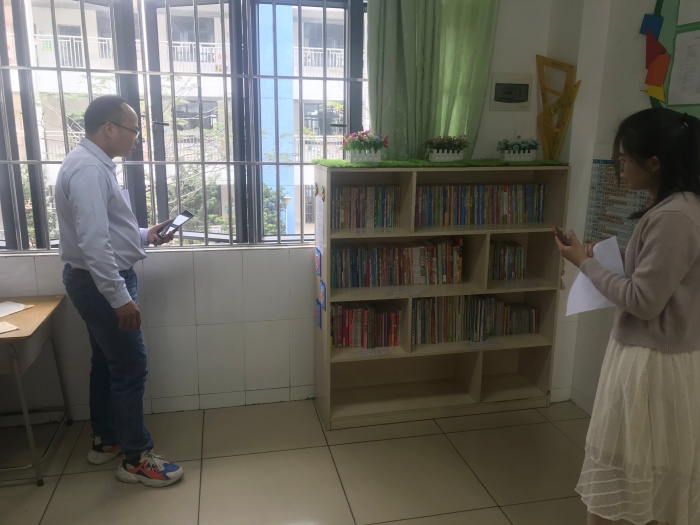 此次評(píng)比,評(píng)委老師們從整體設(shè)計(jì)、藏書(shū)數(shù)量、書(shū)籍種類(lèi)、管理制度、班級(jí)環(huán)境五個(gè)方面入手,對(duì)各班圖書(shū)角進(jìn)行了量化打分,評(píng)選鎮(zhèn)南小學(xué)的“最美圖書(shū)角”。走近各班的圖書(shū)角,只見(jiàn)各類(lèi)圖書(shū)整齊劃一地排列在干凈的書(shū)柜上,各種小巧精致的“圖書(shū)角標(biāo)識(shí)”“圖書(shū)借閱制度”和醒目的“讀書(shū)口號(hào)”等標(biāo)語(yǔ),讓孩子們的閱讀更有秩序。密密麻麻的借閱登記,充分展現(xiàn)了孩子們的勤奮樂(lè)讀,還有那生機(jī)勃勃的小綠植點(diǎn)綴其中,讓評(píng)委老師們不禁嘖嘖稱(chēng)贊,或驚嘆于圖書(shū)角的奇思妙想,或沉浸于圖書(shū)角的簡(jiǎn)約大方,或沉醉于圖書(shū)角的藏書(shū)豐富,或流連于圖書(shū)角的文韻墨香。每一間教室,都讓人感受到濃濃的書(shū)香氣息,每個(gè)班的圖書(shū)角設(shè)計(jì)各具特色,不但凝聚師生們無(wú)窮的智慧,也彰顯著孩子們閱讀的足跡。評(píng)委老師對(duì)待檢查評(píng)比的態(tài)度非常認(rèn)真,按照評(píng)分標(biāo)準(zhǔn)進(jìn)行詳細(xì)的打分,評(píng)選出各級(jí)獎(jiǎng)勵(lì)。