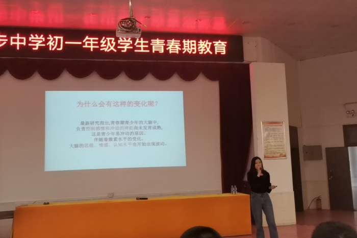 青春期是人成長和成熟的重要階段,一個人的德、智、體、美、勞等方面都會在這一階段飛速地發(fā)展,為了給學生補充兩性社會道德規(guī)范方面的知識,幫助學生解決因青春期而產生的困惑和煩惱,3月22日曹步初級中學舉行了“青春進行時”的青春期心理講座,主講人為學校的心理老師鐘雅儀,演講對象是初一年級全體學生。