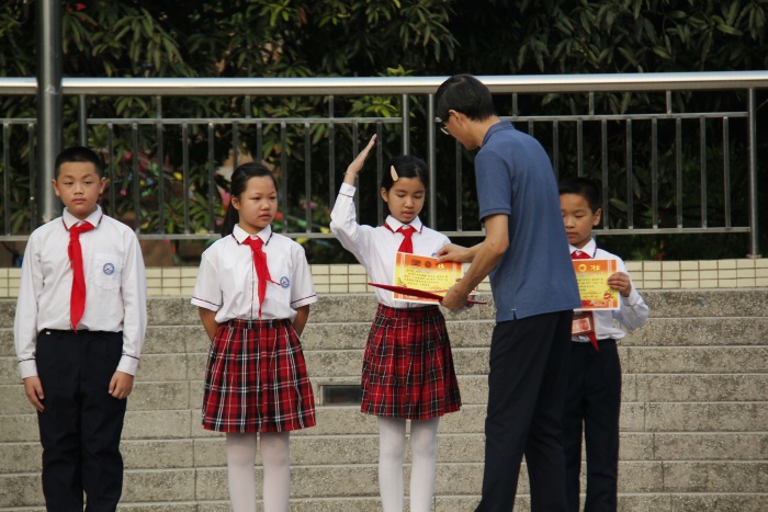 科技節(jié)閉幕式活動(dòng)正式開始,首先進(jìn)行莊嚴(yán)的升旗儀式,緊接著由三(6)中隊(duì)蔡敏瑜同學(xué)演唱紅歌《萬(wàn)水千山》。萬(wàn)水千山有多遠(yuǎn),只有穿著草鞋踏過(guò)的男兒才知道,萬(wàn)里長(zhǎng)征有多難,只有艱辛跋涉的