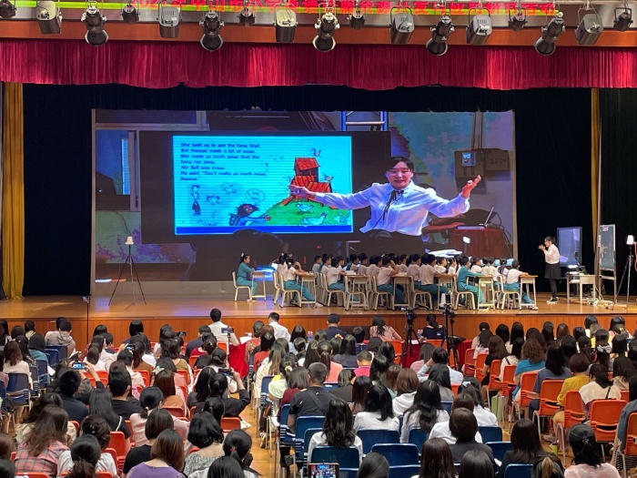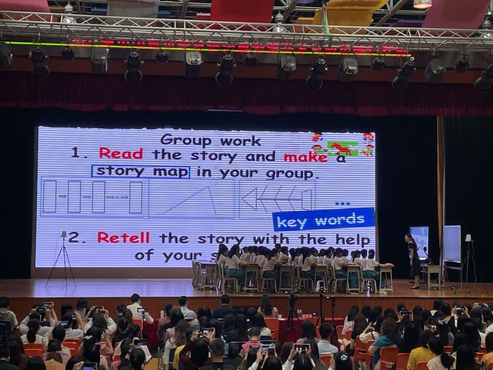 本次研討活動分為四個議程。首先是來自中山市實驗小學(xué)的何娟老師以及該校六年級的學(xué)生合作帶來的繪本《Hens in luck》教學(xué),何老師給與了學(xué)生充分的時間去閱讀,去小組交流以及展示,充分體現(xiàn)了學(xué)生學(xué)習(xí)的主體地位。緊接著,來自東區(qū)朗晴小學(xué)的高斯老師同樣給大家?guī)砹艘还?jié)繪本《The School Trip》教學(xué),高老師對于繪本整體把握、理解、教學(xué)設(shè)計清晰具體。學(xué)生帶著細致且具體的問題來進行繪本閱讀和學(xué)習(xí),在有階度的問題中去理解繪本。兩節(jié)課后,來自北京外國語學(xué)院的程曉堂教授和兩位授課老師一起進行了互動及評課。程教授指出,分清楚繪本設(shè)計問題以及常規(guī)的故事教學(xué)設(shè)計問題是我們現(xiàn)在需要關(guān)注的,分清兩者的區(qū)別與聯(lián)系,更能設(shè)計出更加符合課程的教學(xué)。程老師對兩節(jié)課逐一進行點評,并給出了一些頗具建設(shè)性的意見,如:繪本教學(xué)要按故事發(fā)展的情節(jié)順序進行教學(xué)、繪本教學(xué)重點要放在情節(jié)變化與語言表達上。程教授表示,評課是為了讓上課老師做得更好。相信兩位上課老師以及在座的每一位老師都從中受益匪淺。