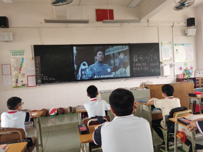 海洲第一小學(xué)積極利用一切公共宣傳資源,積極向教師、家長、學(xué)生推薦黨史黨建影視作品,并在班級內(nèi)適時(shí)播放彰顯中國共產(chǎn)黨光輝歲月歷程的一系列愛國影片,積極引導(dǎo)全校師生進(jìn)行黨史學(xué)習(xí),激發(fā)濃濃的愛國情懷!