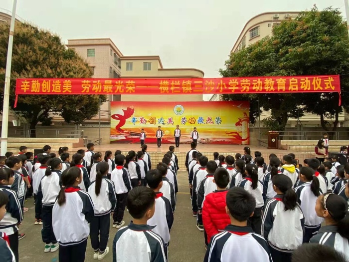 為了進一步增強學生的勞動意識,培養(yǎng)學生的獨立生活能力和進取精神,傳承中華民族勤奮自強的傳統(tǒng)美德,2021年3月1日,橫欄鎮(zhèn)三沙小學在籃球場舉行了主題為“辛勤創(chuàng)造美,勞動最光榮”的勞動教育啟動儀式。