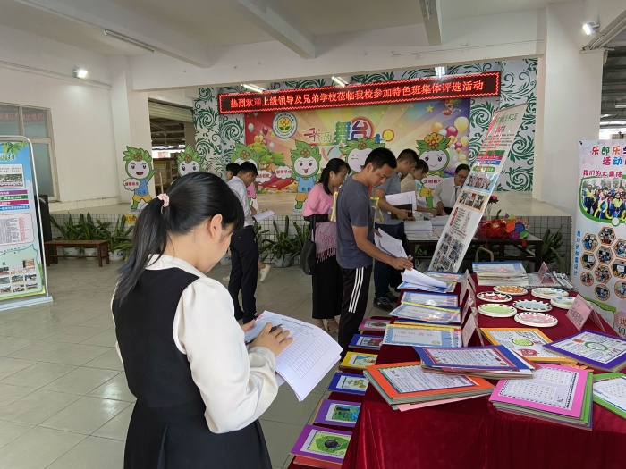 評選活動分為特色展示、申報陳述及答辯三個環(huán)節(jié)。首先是評審成員到各個學(xué)校特色班的展示區(qū)進(jìn)行特色班資料審核、評分。各個特色班展示區(qū)都進(jìn)行了一番精心的布置,盡可能突出了“創(chuàng)造優(yōu)良學(xué)風(fēng)、打造特色班級”的主題,并且資料充足,美觀大方,讓人目不暇接。