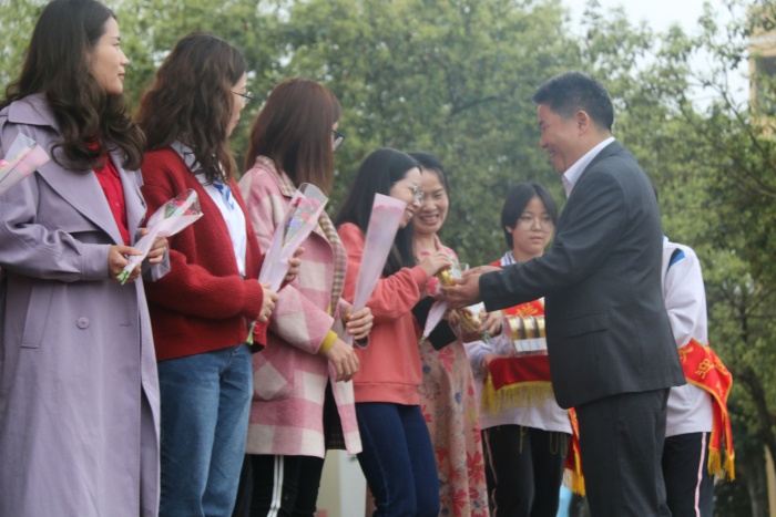 奮進新時代,巾幗綻芳華 陽春三月,大地回暖。百花齊放,芬芳四溢。世界因春回大地而美麗,校園因溫柔細膩的女教師而精彩。為弘揚女性“自尊、自愛、自強、自立”的精神,發(fā)揮女教職工“半邊天”的作用,讓全校女教職工過上一個愉快、光榮的“三八”婦女節(jié),橫欄中學開展了慶祝第111個“三八”國際勞動婦女節(jié)活動。 3月8日7:30全校升旗儀式結(jié)束后,橫欄中學校長黎碧東致辭,祝賀全體女教師節(jié)日快樂。黎校長充分肯定了學校140多名女教職工在工作中取得的成績,對學校各項事業(yè)作出的貢獻,也肯定了女教師對學生、家庭、社會等的影響力。最后黎校長希望女教師繼續(xù)弘揚巾幗不讓須眉的精神,緊跟時代發(fā)展,學習兩會、十四五規(guī)劃精神,智慧工作,團結(jié)協(xié)作,為把橫欄中學早日建成“環(huán)境與質(zhì)量雙一流”的學校作出新的貢獻。 接著由音樂科組帶來的歌曲《最美的歌兒唱給媽媽》,表達了人們對黨、對人民、對廣大婦女群眾的尊重與熱愛。 最后,黎校長攜校領(lǐng)導把這份祝福和期望寄托在一支支的鮮花和一盒盒的巧克力中,送到全校每一位女教職工手中。 各位女教師臉上洋溢著喜悅,在十四五規(guī)劃的新時代征程上再次出發(fā),續(xù)寫無愧芳華的美麗篇章。
