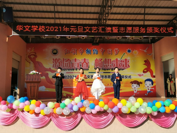 時(shí)光流淌辭舊歲,萬(wàn)象更新賀新年。為豐富學(xué)校文化生活,給華文學(xué)子搭建一個(gè)培養(yǎng)能力、展示才華的舞臺(tái),激發(fā)學(xué)生熱愛(ài)生活、熱愛(ài)學(xué)習(xí)、熱愛(ài)校園的情感,提高學(xué)生的全面素質(zhì),華文學(xué)校于12月31日上午舉行2021年元旦文藝匯演暨志愿服務(wù)頒獎(jiǎng)儀式。